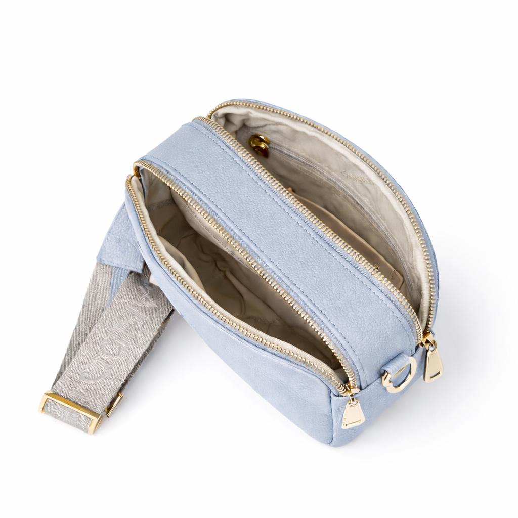 Dotata di una pratica tasca posteriore per l'accesso rapido agli oggetti di uso frequente, si distingue per la sua organizzazione interna ben strutturata: doppio scomparto chiuso da zip, con all’interno una tasca con chiusura lampo da un lato e una doppia tasca aperta dall’altro.