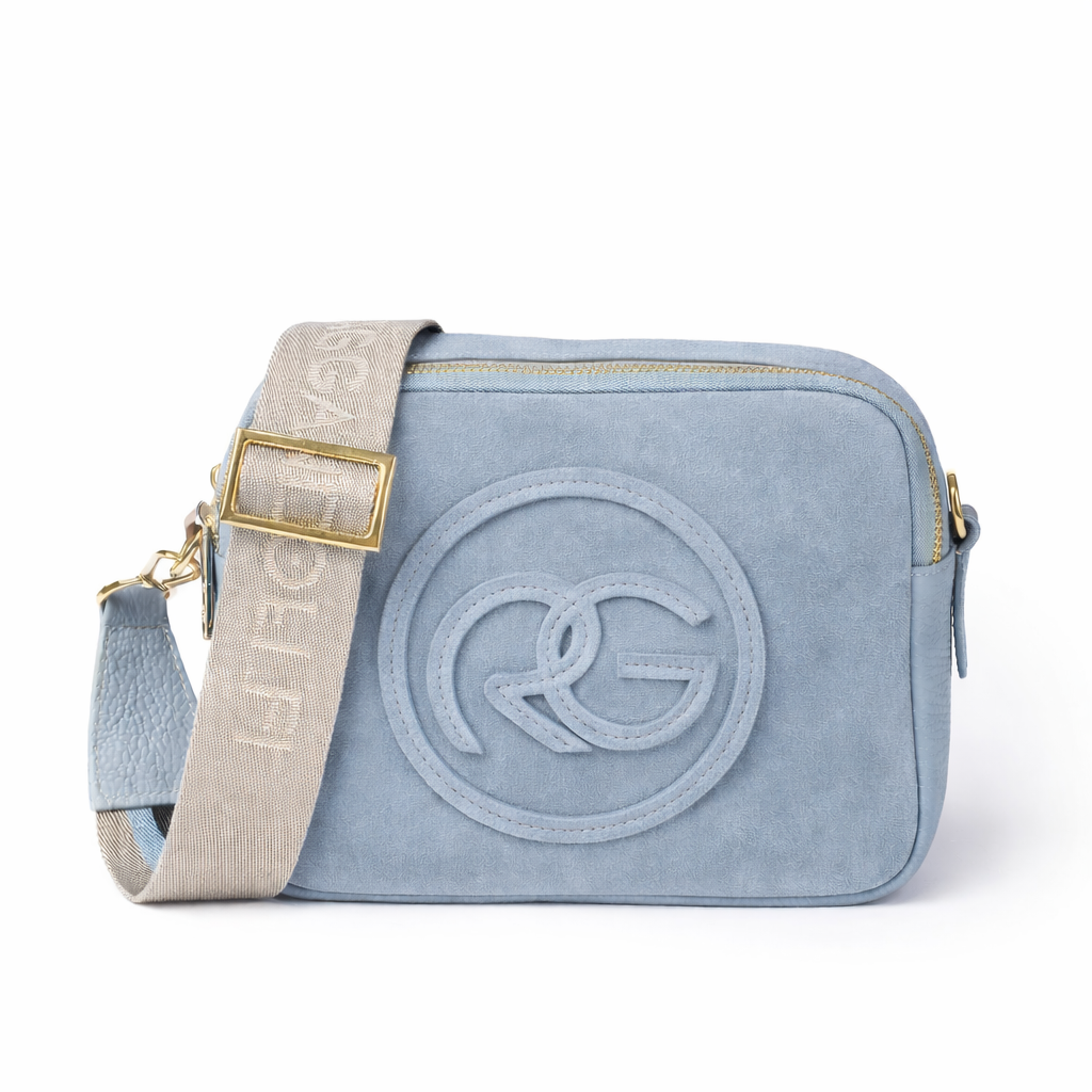 Roberta Suede – Camera compatta in camoscio e pelle martellata con tracolla regolabile