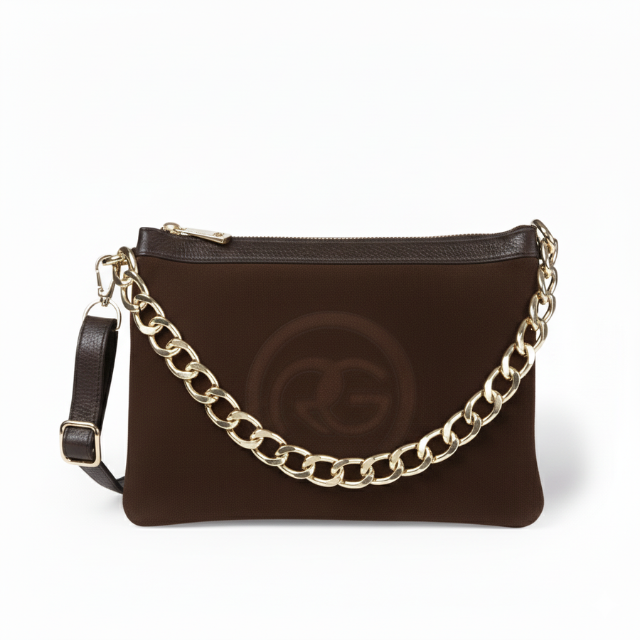 Uno degli elementi distintivi di questa borsa è la catena in metallo dorato, che non è solo un elegante dettaglio decorativo, ma può trasformarsi in uno spallaccio per un utilizzo pratico. Inoltre, la catena è staccabile, permettendo di personalizzare il look a seconda dell'occasione. La tracolla in pelle, anch'essa regolabile e staccabile, offre una maggiore versatilità, consentendo di indossare la borsa a spalla o a bandoliera a seconda delle preferenze.