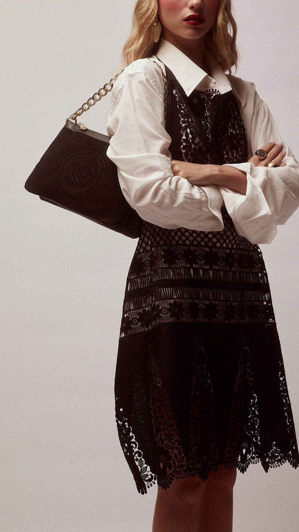 La Alice Small borsa a tracolla in pelle scamosciata e martellata unisce eleganza e praticità in un design versatile. La parte anteriore in pelle scamosciata le conferisce un tocco raffinato, mentre il retro e i lati, realizzati in resistente pelle martellata, garantiscono struttura e durabilità, perfetta per accompagnarti in ogni momento della giornata.