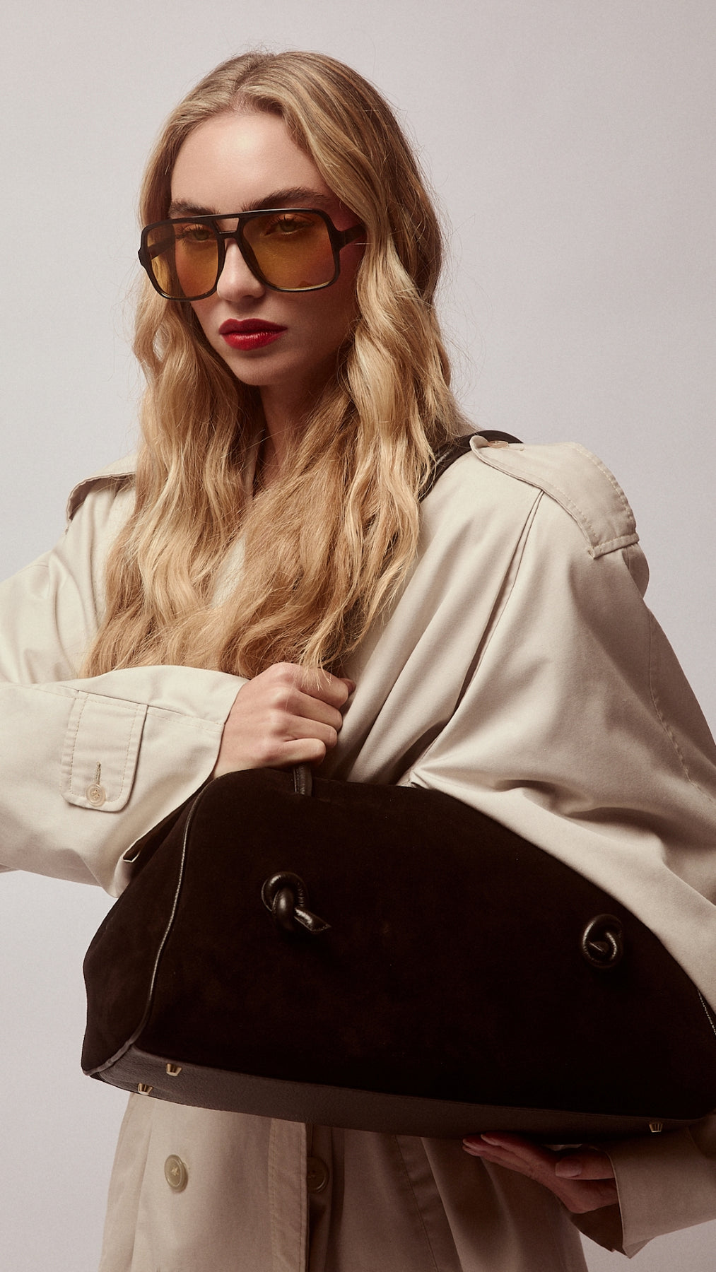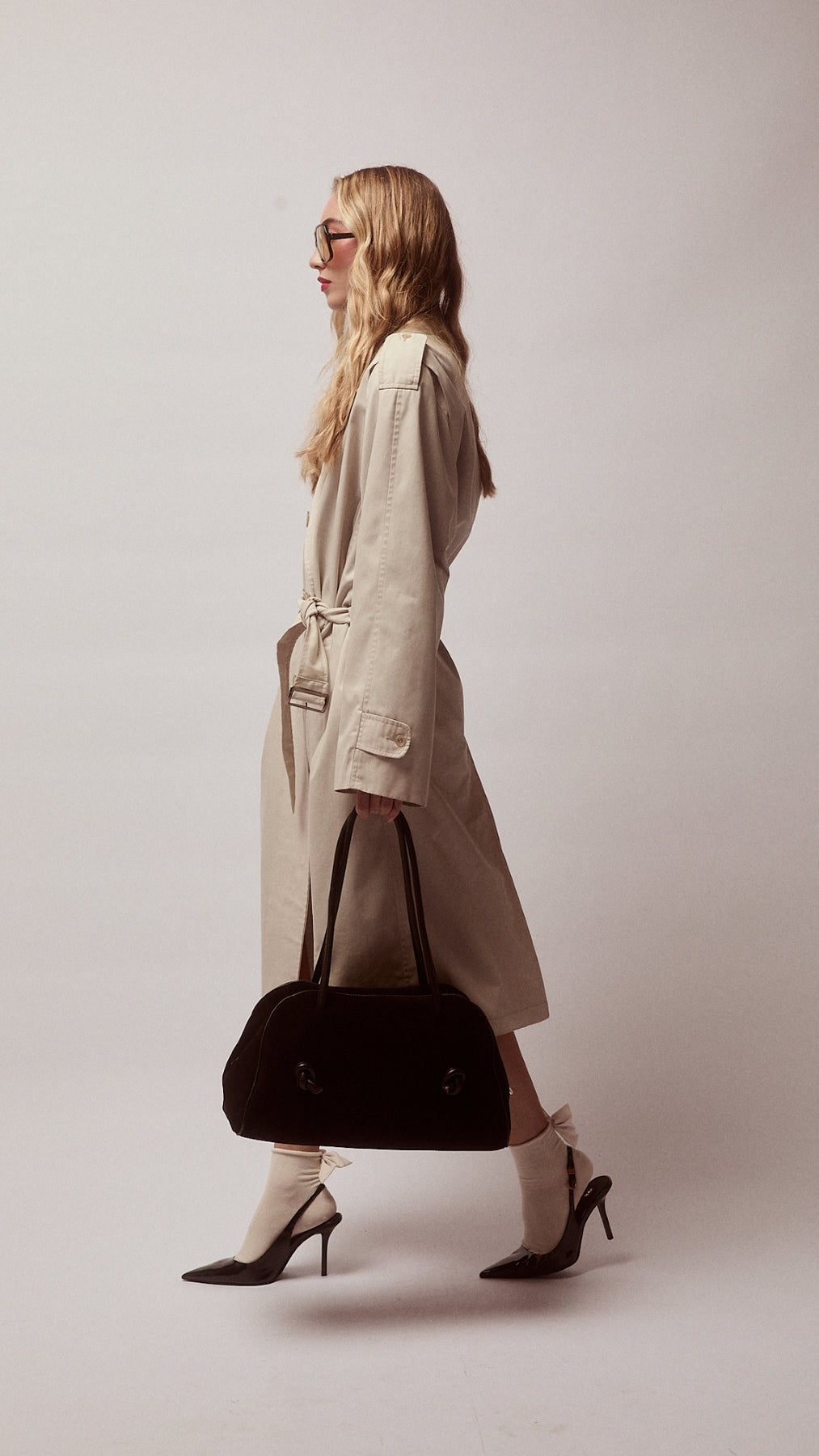 Realizzata in morbido vitello scamosciato, si distingue per la sua texture vellutata e l’eccellente qualità artigianale.