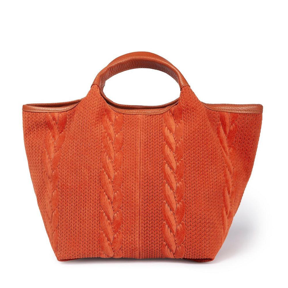 Made of soft textured leather expertly micro-perforated with this exclusive “net” design which creates a see-through effect on the main walls and delicately edged and finished in the same leather