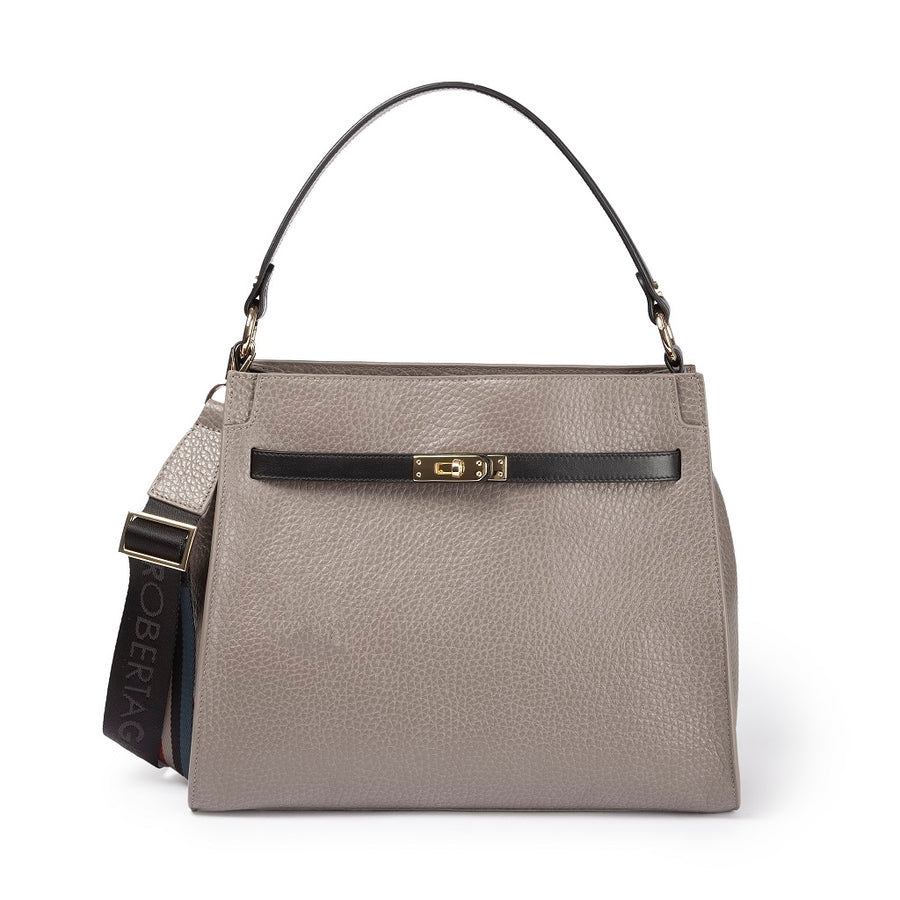 Frida Satchel in grained leather with adjustable fabric shoulder strap