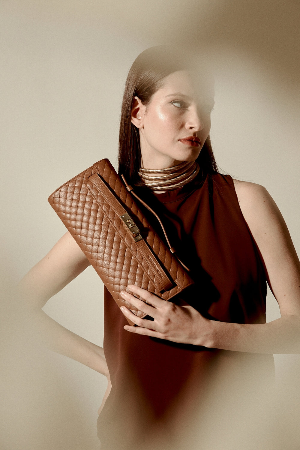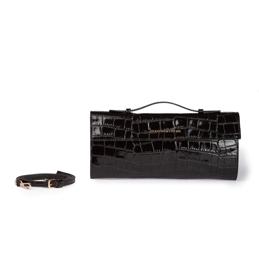 To be carried by hand or on the shoulder and by adding the shoulder strap you can also wear it in a more casual way as a crossbody so as to have your hands free.